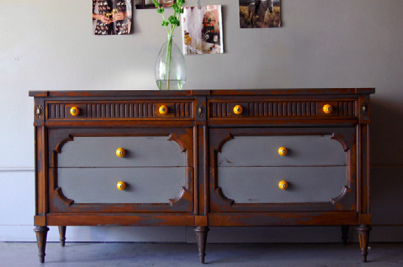Må bare vise dere disse bildene fra Knack Studios (Barbara Blair). Synes hun pusser opp møblene uten at de blir chabby chic og for søte, det er vel kanskje fargene som gjør det..... Passer fint inn i den industrielle looken som er så hot nå. Knappene som ligger på fatet er flere knapper som er satt sammen med en magnet på baksiden, lekkert og veldig lett å lage selv. Ser ut som en gotteskål :-) http://www.knackstudios.com